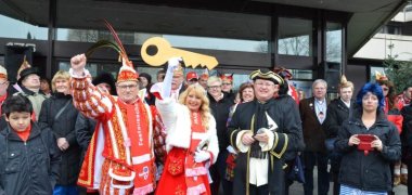 Am Wochenende erstürmten die närrischen Heerscharen aus zwölf Stadtteilen wieder einmal das Rathaus. Bürgermeister Jablonski, der sich ordentlich wehrte, musste ob der Übermacht der Karnevalisten klein bei geben und überließ den Jecken schließlich das Rathaus.