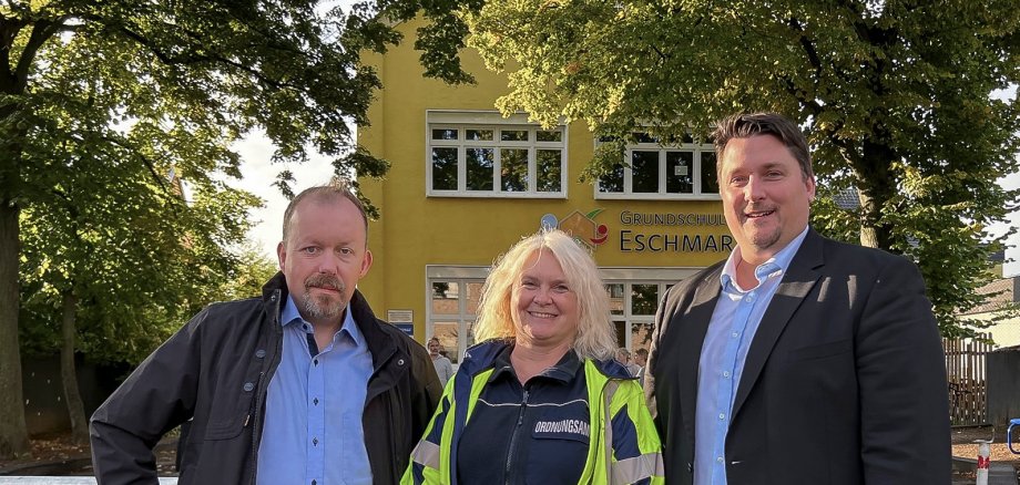 Die Sicherung der Schulwege und ihr Ausbau ist seit vielen Jahren ein Schwerpunkt der Troisdorfer Verkehrspolitik. „Schulwege sind mit täglichen Gefahren für unsere Kinder im Straßenverkehr verbunden. Wir müssen alle - Eltern, Lehrer, Polizei und Stadtverwaltung - gemeinsam versuchen, diese Gefahren so weit wie möglich zu vermeiden, um die Schulwege noch sicherer zu machen“, betonte Bürgermeister Alexander Biber heute bei einem Pressetermin zum Schulstart an der Gemeinschaftsgrundschule in Eschmar. Dort werden in diesem Jahr 54 Schulneulinge eingeschult. Biber weiter: „Damit die Sicherheit der Kinder im Straßenverkehr gewährleistet werden kann, erarbeitet die Stadt Troisdorf aktuell mit einem Planungsbüro ein schulisches Mobilitätsmanagement für die zwölf Grundschulen in Troisdorf. Dies beinhaltet im ersten Schritt eine Befragung der Eltern über die Schulwegsituation ihrer Kinder. In der Umfrage werden die Eltern dazu befragt, mit welchem Verkehrsmittel ihre Kinder zur Schule kommen und wo bzw. ob sie Gefahrensituationen auf den Schulwegen sehen. Die Gemeinschaftsgrundschule Eschmar ist eine der fünf Grundschulen, mit denen wir in diesem Jahr starten. Dort fand im Juni 2023 bereits eine Auftaktveranstaltung statt. In Kürze werden die Eltern über die Schulwegsituation ihrer Kinder befragt. Die Umfrage wird anschließend ausgewertet und bildet das Mobilitätsverhalten an der Grundschule im jetzigen Zustand ab. Die genannten Gefahrenstellen werden begangen und bewertet. Die Auswertung der Fragebögen erfolgt noch in diesem Jahr. Im nächsten Schritt werden dann daraus folgend erste Maßnahmen abgeleitet. Bis Ende des Jahres 2025 soll für alle zwölf Grundschulen im Stadtgebiet ein Mobilitätskonzept entwickelt werden.“
