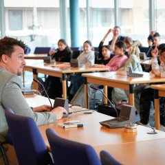 Bürgermeister Alexander Biber nahm sich viel Zeit, um die vielen Fragen der 27 Schüler*innen zu beantworten. Die Themen waren dabei vielfältig und die Schüler*innen sehr interessiert. So gab es Interesse zum Beruf des Bürgermeisters, zu seinem Alltag, aber auch zu seinen Hobbys und seinem Werdegang. Einige Schüler*innen gaben an, überrascht zu sein, dass ein Bürgermeister auch am Wochenende arbeiten müsse. Auf die Frage, warum er denn Bürgermeister werden wollte, antwortete Alexander Biber: „Weil das der beste Job ist, den ich mir vorstellen konnte. Bürgermeister der Stadt Troisdorf zu sein, ist eine große Ehre, weil hier ganz viele tolle Menschen leben und weil man als Bürgermeister die Stadt auch nach außen vertreten darf.“